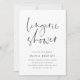 Gästerna i inbjudan firade att bruden skulle vara med dessa moderna och minimala dubblor i inbjudningskort för möhippa i klassisk svart och vitt. Den enkla designen har "lingerie-dusch" i handskrivet skript för avslappnad, med din händelseinformation under modern mjuk, svart skrift. Lägg till ytterligare information på baksidan med anpassningsbarna fält och QR-kod, som visas med instruktioner för panelspel, mutsens storlek och en QR-kodlänk för register.
