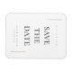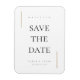En enkel, modern icke-foto spara datum med eleganta vertikala guldbalkakcenter. Ett bra sätt att tillkännage er kommande bröllopsvigsel eller evenemang.