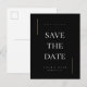 Ett enkelt, modernt icke-foto spara datumet vykort med eleganta vertikala guldstaplar accenter. Ett bra ekonomiskt sätt att meddela din kommande bröllops vigsel eller evenemang.