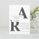 Gör ett djärvt påstående med denna moderna minimalistiska bröllopsinbjudan med stort typografiskt initialer och en ren redaktionell utformning. Med elegantens svarta och vita stil är den här designen perfekt för chic City bröllop, formell firande eller ett par med kärlek för modern enkelhet. 🖋️: Oversifierad initialer i snyggt serif font monochrome färg palette (svart och vitt) Minimalist och redaktionell Anpassade för layout för namn, datum, plats Perfekt för modernt, elegant eller minimalistiskt bröllop