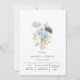 Ange tonen för ditt romantiska firande med den här moderna minimala blåa Blommigtens bröllopsinbjudan. Blommigten bouquet ger elegans och lugn till din stora dag. Med en ren layout och tidlös typografi blandar den här inbjudan minimalistisk design med en mjuk botanisk charm - perfekt för trädgård, utomhus eller naturinspirerat bröllop. 🌸 egenskaper: blommigt med vattenfärg i nyans med nyans av blått, beige och sage Elegant serif-typsnitt med modern layout Minimalistisk utformning, enkel att anpassa Ideal för vår, sommar eller rustik chic bröllop 🖋 Fully-anpassade genom Zazzle - ändra namn, data, typsnitt eller till och med färg så att de stämmer överens med din vision.