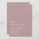 Contemporary, modern, minimal dammig bröllopsinbjudan till ro med monogram i högernas övre hörn och enkel kalligrafi.