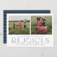 Det här moderna och minimala julkortet i religiösa har en klassisk känsla av "A Thrill of Hope, the Weary World Rejoices" tillsammans med två av dina familjefoller. Den här designen kan vara personlig med dina egna foton och din familj namn. Den här designen har ett marint blått och vitt färg.