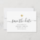Den här eleganten Spara datumkortet visas med enkelhet. Modern typografi, underbar kalligrafi och accentuerad av ett sött hjärta i faux guld.