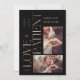 Uppdatera din familj och dina vänner med ditt nya bröllop-datum med vår moderna och minimala svarta spara med det nya datumfotokortet. Utformningen har en modern, två fotolayouter som visningar dina egna speciella foton. "Kärlek är Patient" visas med namn och ett nytt bröllop-datum i en modern faux-ro-typografi av folie med guld. Den omvända sidan har en enkel utformning av ro guld gräns och ett personlig på baksidan.