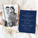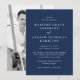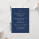 Öka din bröllop-stationär med den här elegantens bröllopsinbjudan till marinen med fet, vit stil, nypsade kalligrafaccenter och djup marin bakgrund. Designat för både formellt och avslappnad bröllop är det minimalistiska stil en tidlös sofistikering och modern charm. Baksidan visar parets förlovning av lodrät och lägger till en personlig och hjärtfull beröring till ditt speciella meddelande. Med den här inbjudan, som är ett perfekt anpassade för att spegla ditt unika stil, framhävs på ett vackert sätt dina bröllop-detaljer med en förfinad och mångsidig estetik.