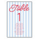 This is a Modern Minimal Minimalist Blue Stripes Red Wedding Table Number w/ Names!
