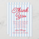 This is a Modern Minimal Minimalist Blue Stripes Red Custom Picture Wedding Thank You Card!