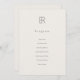 Modern minimalist wedding program featuring an elegant interlocking monogram and clean, refined typography. Designed for civil ceremonies, city hall weddings, elopements, and contemporary celebrations, this wedding program presents the ceremony order with clarity and understated style.