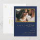 Modern Minimal Mörkblå Guld Foto Spara Datum Inbjudan Vykort