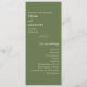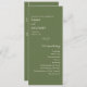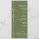 Ett minimalt och modernt oliv grönt bröllopsprogram, designat med skript och en blommigt inslag. Anpassa med ceremonin i bröllop på framsidan och din bröllopsfest och tack för ditt budskap på baksidan.