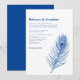 Modern Minimal Peacock Feather Blue Bröllop Inbjudningar
