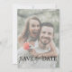 Informera dina gäster om din kommande stora dag med inbjudan till Bröllop spara datum i snyggt. Det här kortet är en elegant och minimal design med ett fantastiskt skript-teckensnitt och är redo att lägga till information och eget foto. Lämna texten som den visas här i svartvitt, eller ändra färg så att den stämmer överens med Bröllopsdagens tema.