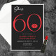 Modern och chic, den här födelsedagsinbjudan säger: "Hon är 60" och kombinerar klassiskt svart och vitt med ljusröda accenter, med ett lekfullt par läppar. Det är en minimal design som är enkel och roligt för att fira milstolpen. Skapat av Farmhouse Press.