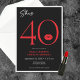 Modern och chic, denna födelsedagsinbjudan deklarerar, "hon är 40" och kombinerar klassisk svart och vit med inslag av lysande röd, med ett lekfullt par läppar. Dess minimalistiska design är en enkel och rolig design för att fira födelsedagsjubileet. Skapad av Simply Farmhouse Press.