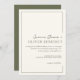 Fira din speciella dag med denna minimala, moderna bröllopsinbjudan till chicen, en perfekt blandning av contemporaryns elegans och tidlös charm. Den här inbjudan är designad att imponera på, eftersom den har en sofistikerad modern typografi och ett elegant ram gräns. Paletten Sage grönt och krämen färg tillför en aning finslipad skönhet, skapar ett inbjudande och snyggt estetiskt som anger tonen för bröllop. Baksidan av inbjudan visar namn på bröllop-paret och ser till att er kärlek-historia lyfts fram med den uppmärksamhet den förtjänar. Perfekt för par som uppskattar en minimalistisk utformning med en modern tvist. Se designsamlingen för alla stationära behov i bröllop.
