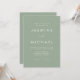Enkelt, elegant bröllop-inbjudningar med ett vitt, handskrivet skript blandat med modernt skript mot en bakgrund av en sage grönt. Anpassa den minimalistiska bröllopsinbjudan med ditt namn och uppgifter om bröllop. Sage grönt bröllopsinbjudningar är perfektens val för det moderna bröllop.