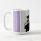 A modern minimal chic gift mug in lavender to commemorate graduation with a simple clean design, featuring customizable text in a sleek sans-serif script, and and photograph on the front. Simply personalize it with your details and gift your loved one a keepsake to remember.
