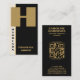 Modern minimal svart monogram-Lodrät QR-kod Visitkort