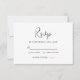 Den här snyggten Modern Minimal Black and White Elegant bröllop OSA kort kombinerar klassiskt inslag med kontrast-kalligrafi-skripttypografi, vilket skapar en lyxig och formell beröring till ditt bröllop-kontorsmaterial. Det svarta och vita färg-schemat lyfter tidlös charm och ser till att dina OSOR framträder utan problem. Contemporaryn och den minimalistiska utformningen är perfekten för par att söka en snyggt och sofistikerad vib för sin speciella dag. Utforska hela samlingen med minimalistiska moderna inbjudningar i Elegant bröllop för ytterligare objekt som utan problem kompletterar detta fantastiska svarskort.