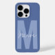 Modern minimal typografi i monogram dammig blå och vit elegant, enkel, unik personlig-telefonhylsa.
