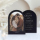 Den här romantiska svarta bröllopsinbjudan fångar kärnan av modern lyx, tidlös elegans och djupet på din kärlek-historia. Dess minimalistiska utformning, parad med en djärv, dramatisk svart bakgrund, placerar parets namn framför och mitt - skapar ett oförglömligt första intryck. På motsatt sida ger ett foto som är inramat i en graciös beväpnad silhuett en djupt personlig beröring. Hela inbjudan är avslutat med en sofistikerad, bågformad skärning, som påminner om stort, romantiskt grind - som lägger till en detalj som förbättrar sviten med förhöjt charm och förfining av contemporaryn. Denna inbjudan är, som är mycket designad för modern romantik, helt och hållet anpassade för att matcha ditt unika stil. Anpassa färgen för text och bakgrund, välj bland ett urval av eleganter och luxe-pappra avslutar för att skapa en inbjudan som är så oförglömlig som din bröllopsdag själv.