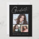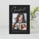 Rena, trendig, moderna och elegant "3-fotokort" i studenten, med inslag av modern text med ett unikt calligraphy-skript i bläck. Fotona från student accentueras med en delikat och minimalistisk övertoningsgräns. Kortets baksida ger personlig textutrymmen för information om studenten. Svartvit eller anpassa bakgrunden så att den passar din skolas primära färg eller valfritt färg. Perfekt för högstadiet, högskolan och universiteten grad student.