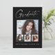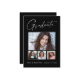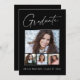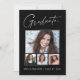 Trendig, moderna, enkla och elegant "4-foto" studenten-meddelandekort, med inslag av modern text med ett unikt calligraphy bläck-skript. Fotona från student accentueras med en delikat och minimalistisk övertoningsgräns. Kortets baksida ger personlig textutrymmen för information om studenten. Svartvit eller anpassa bakgrunden så att den passar din skolas primära färg eller valfritt färg. Perfekt för högstadiet, högskolan och universiteten grad student.