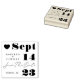 Trendig och modern spara datumet gummi frimärke med datumet bröllop på framträdande plats i en fetstilslayout. Månad, Dag och År visas djärvt, och "Spara datumet" kombineras med en modern handstil med kalligrafi. Anpassa med parets namn, datum och plats för bröllop.