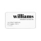 Modern, white return address labels featuring the names and surname aligned to the right, and return address aligned to the left.