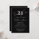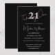 Celebrate in style with this modern minimalist 21st birthday invitation on a striking black background for a bold and elegant look. Featuring delicate pink script and a clean white typography, this design creates a beautiful contrast that feels both timeless and elevated — perfect for an evening celebration or a more formal 21st event.