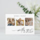 Set the stage for your wedding with this modern minimal save the date card design. Featuring space for three of your favorite engagement pictures paired with an elegant script saying, "with you I am home", this clean layout is perfect for the contemporary couple to announce their special day. Created by Simply Farmhouse Press.