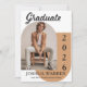 Fira din examen med denna moderna välvda fotots examensannonsering med en varm och neutral färgpalett och en djärv vertikal 2026-design. Den samtida layouten kombinerar elegant, handskriven text med ren serif-typografi och skapar ett polerat och tidlöst uttryck som passar utmärkt för både killar och tjejer.