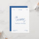 En sofistikerad bröllopsinbjudan med elegant handskriven skrift i kombination med ren serif-typografi i klassiskt blått. Perfekt för kustbröllop, firanden på Franska Rivieran och sofistikerade minimalistiska bröllopsteman. Layouten håller fokus på namn och typografi, vilket ger den en känsla av lugn, luftighet och elegans. En del av den koordinerade bröllopssamlingen "Florence" – utforska matchande delar i hela sviten. Mockups för denna design skapades med hjälp av Midjourney AI.