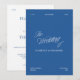 En sofistikerad bröllopsinbjudan med elegant handskriven skrift i kombination med ren serif-typografi i klassisk blå färg. Perfekt för strandbröllop, firanden på Franska Rivieran och sofistikerade minimalistiska bröllopsteman. Layouten håller fokus på namn och typografi, vilket ger den en känsla av lugn, luftighet och elegans. En del av den koordinerade bröllopssamlingen "Florence" – utforska matchande delar i hela kollektionen. Mockups för denna design skapades med hjälp av Midjourney AI.