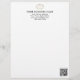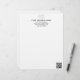 Add your business name, address, QR code and logo to this modern black and white letterhead. The minimalist script can be customized for your purposes. Above the name is space for your business logo. In the lower right corner you can add a QR code link. Browse my collection for matching business product templates.