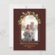 Detta är ett modernt minimalistiskt blomsterbåge-kort med ett foto som kan anpassas till en högtidskort i chokladbrun färg.