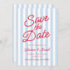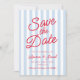 This is a Modern Minimal Minimalist Blue and Red Stripes Wedding Save The Date Card!