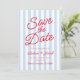Modern Minimalist Blue and Red Stripes Wedding Spara Datumet