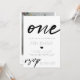 Modernt script "ett" med hjärtformade accenter och en bakgrundsdesign för fotomall. Den perfekta minimalistiska inbjudan till första födelsedagen