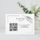 Ett enkelt och elegant bröllopswebbplats RSVP-bifogat kort i en modern minimalistisk designstil med klassisk bokstavsstil och en snygg, sofistikerad känsla på vit bakgrund Meddelandet kan enkelt ändras med ditt datum, bröllopswebbplats och skannbar QR-kod.