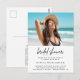 Modern minimalist bröllopsfest-fotoinbjudan postkort - En modern minimalist postkortsinbjudan med ett foto av den blivande bruden. Modern minimalist skriptdesign. Del av en bröllopssamling.