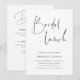 Bjud in gäster att fira den blivande bruden med dessa moderna och minimalistiska dubbelsidiga bröllopsfest-lunchinbjudningar från Redwood & Vine Design Co i klassiskt svart och vitt. Enkel design med "bröllops-lunch" i avslappnad handskriven stil, med evenemangets detaljer under i modern mjuk svart bokstavsstil. Anpassa baksidan med ytterligare information; visas med en önskan om recept, önskan om oinpackad gåva (visningsgåva) och en registrerings QR-kod.