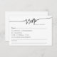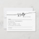 A timeless black and white RSVP card designed in a clean minimalist layout with elegant script. Includes space for guest meal preferences, dietary notes, and even a song request. The back features a functional QR code for online replies or additional details. Perfect for modern weddings in any season—classic, boho, or rustic themed. Ideal for couples who want simple elegance with a tech-savvy touch