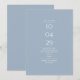 Ett modernt minimalistiskt save-the-date-kort som presenterar ditt speciella datum och bröllopsdetaljer i klassisk, chic typografi på en dammig blå bakgrund. Designad av Thisisnotme