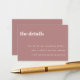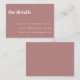 Modern minimalist Dusty Ro Retro Personligt bröllp Tilläggskort