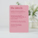 Ett enkelt och elegant brölloppsdetaljkort som ger gästerna riklig information.