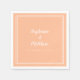 Enkel, minimalistisk och chic bröllopsservett med modern design med dubbel ramad kant i krämvitt på en trendig persikofärgad bakgrund. Denna moderna enkla design ger tidlös, klassisk sofistikation. Personliga namn på paret och datum för evenemanget i elegant vit bokstav och script. Dessa är en perfekt följeslagare för alla bröllop! Se till att se samlingslänken på denna sida för att se alla matchande föremål! Vänligen rikta frågor eller anpassade förfrågningar till invitationsuites@gmail.com.