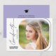 Den här moderna examensinbjudan har en minimalistisk design med handskriven text på vit bakgrund. Baksidan erbjuder anpassad text så att du kan lägga till dina festdetaljer på en ljuslila bakgrund.