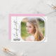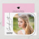 Denna moderna examensinbjudan har en minimalistisk design med handskrivna stilen text på vit bakgrund. Baksidan erbjuder anpassad text så att du kan lägga till din festinbjudan detaljer på en ljusrosa bakgrund.